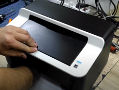 3. Закройте крышку аппарата. Как только услышите работу двигателя принтера, отпустите рычажок и через секунду прижмите снова. Дождитесь окончания работы двигателя.