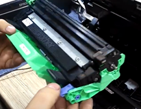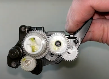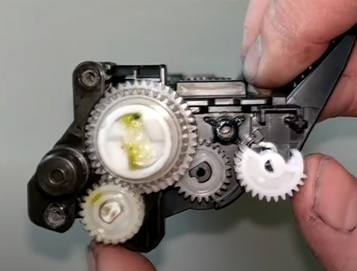 «Флажок» — это белая шестерня с боковым вырезом, находящаяся под боковой крышкой картриджа. Ее необходимо установить в такое положение, чтобы зубчики смотрели через отверстие в картридже. Сброс счетчика тонера «флажком», рекомендуется производить в специализированном сервисе, так как не всегда правильная его установка дает положительный результат. Тогда приходиться доставать картридж и повторять процедуру прокрутки «флажка» до тех пор, пока счетчик не будет сброшен. Существуют некоторые модели картриджей, на которых отсутствует данная шестерня, если ее нет на картридже, то вам необходимо воспользоваться вторым способом. Сброс счетчика тонера без использования «флажка» (например, если у вас стартовый картридж, либо заправлен не в авторизованном сервисе) выполняется путем нажатия на специальный датчик внутри аппарата. Сброс выполняется при включенном принтере.